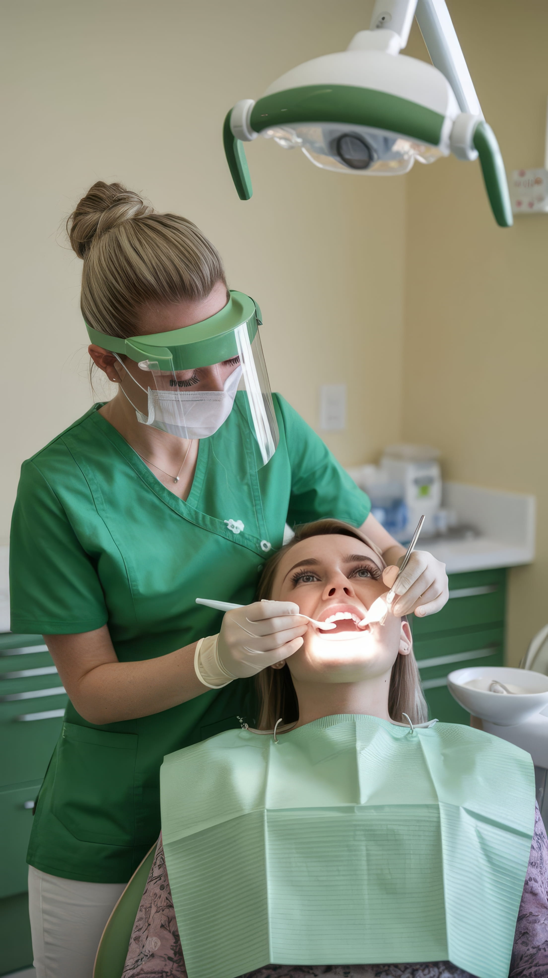 Ammattitaitoinen puhdistus ja terveystarkastus modernilla välineistöllä.