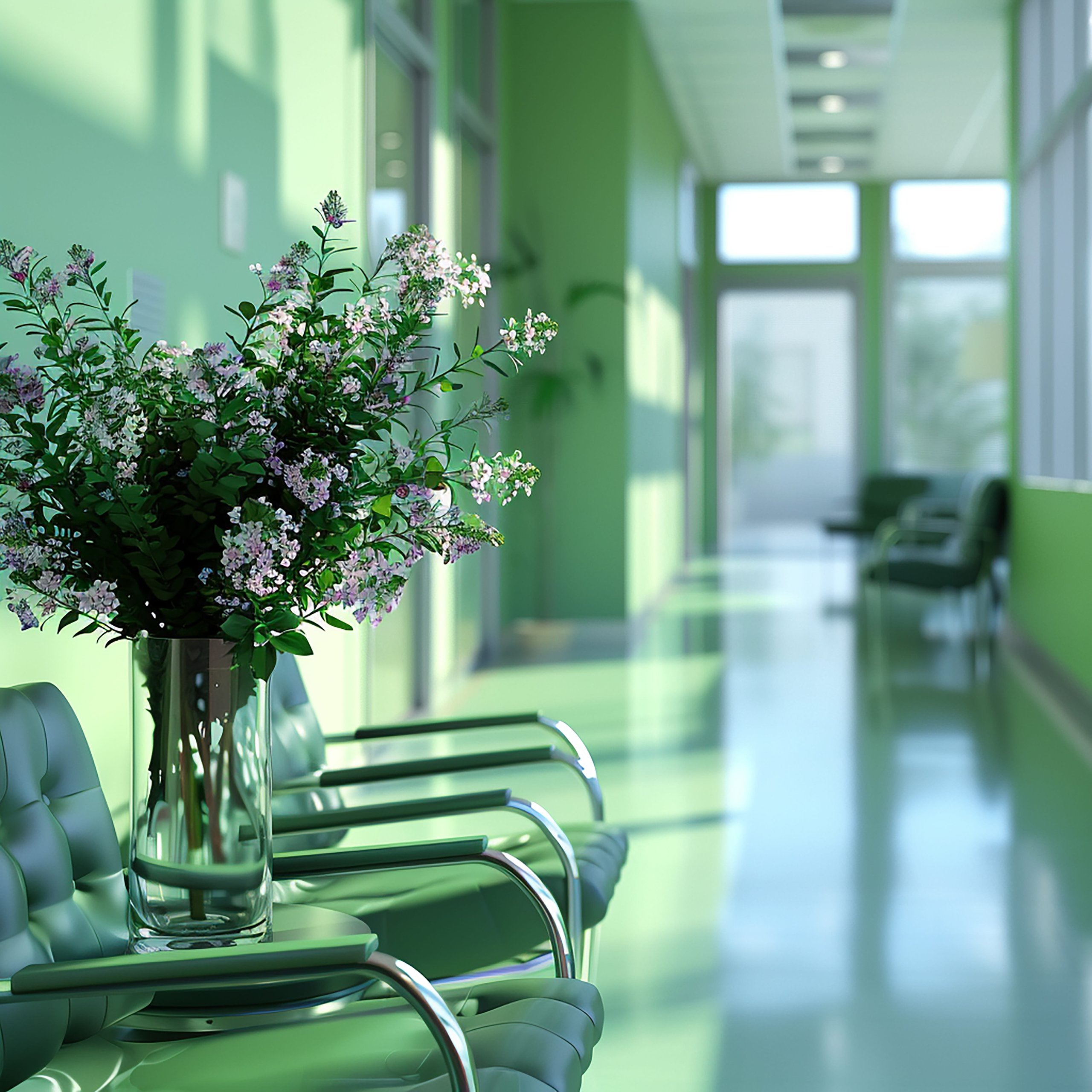 Odotushuone on miellyttävä ja hoitotilat suunniteltu potilaan mukavuudelle.